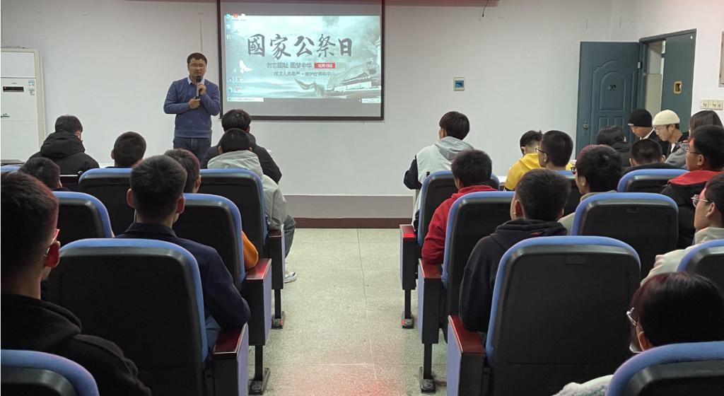 翠柏苍松慰英灵,九霄风雨壮英魂。2021年是第八个南京大屠杀死难者国家公祭日,为了铭记历史,缅怀抗日烈士,12月13日,beat365英国官网在机电楼304举办第八个国家公祭日纪念活动。各班级代表、团委、学生会干部代表共100余人参加。