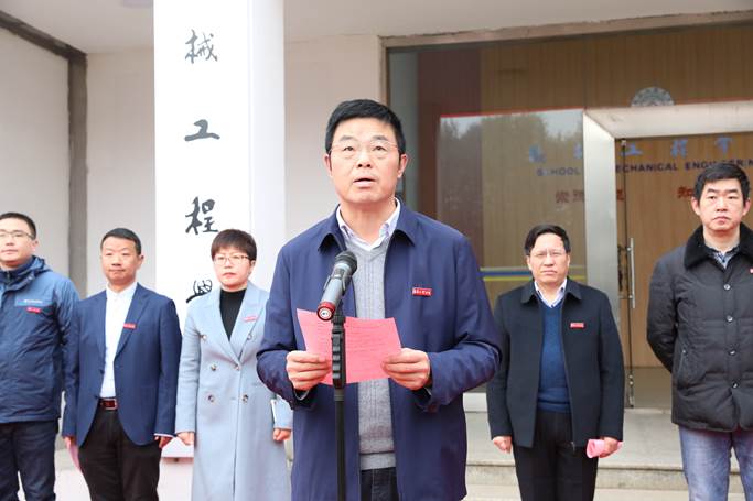 12月23日上午,南昌工程学院机器人现代产业学院揭牌仪式在beat365机械电气楼举行,校党委副书记、校长汪胜前,校党委委员、副校长陆伟锋,校党委委员、副校长李培生出席仪式,机器人研发制造应用相关企业负责人、教务处负责人、beat365英国官网班子成员、江西省精密驱动与控制重点实验室骨干成员、南昌市焊接机器人与智能化技术重点实验室负责人、机器人工程专业全体师生、beat365英国官网研究生等150余人参加了揭牌仪式。揭牌仪式由陆伟锋主持。