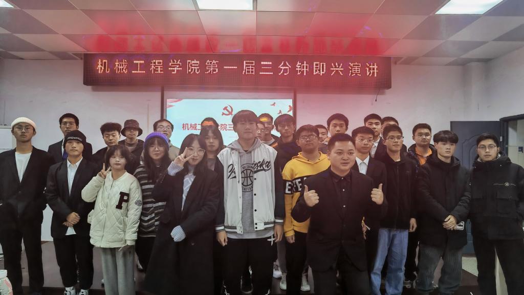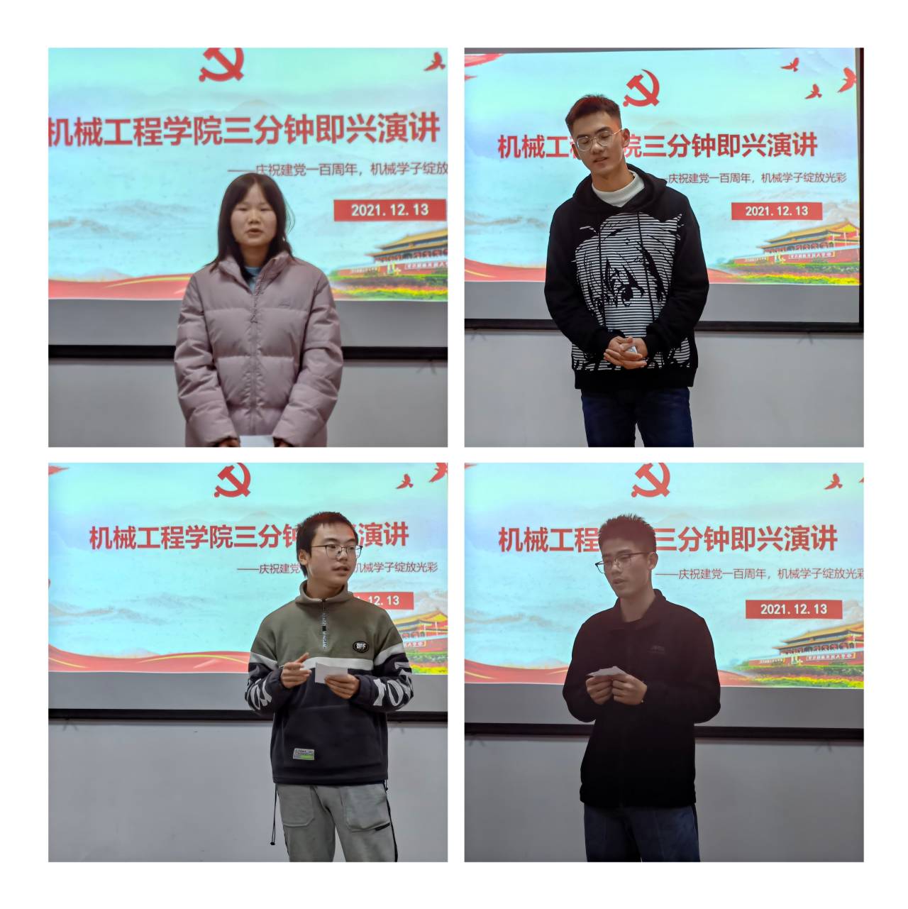 12月14日,beat365英国官网在机电楼A304会议室举办了以“庆祝建党一百周年,机械学子绽放光彩”为主题第一届“三分钟即兴演讲”比赛。各班级选手、团委、学生会各部门代表、老师评委共43人参加。