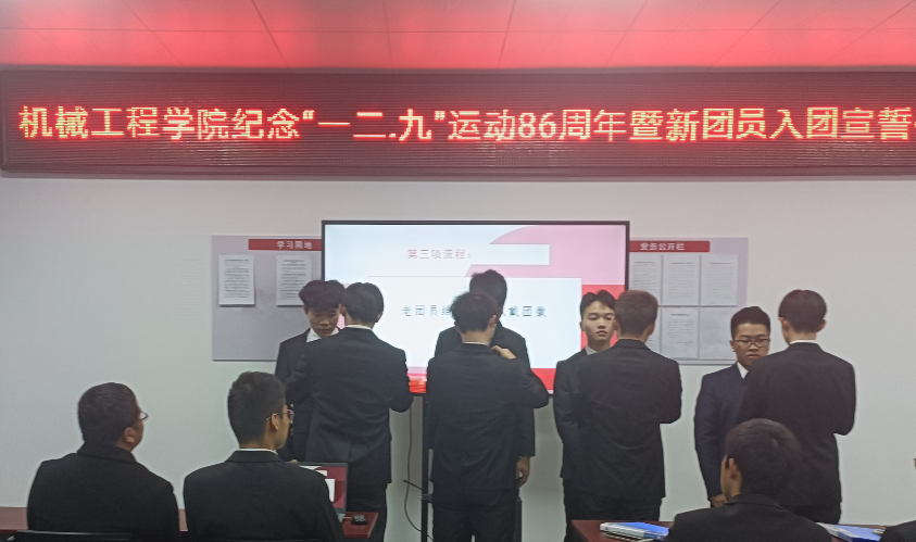 为纪念一二九运动86周年,弘扬爱国主义精神,加强学院团组织队伍建设,增强团员的责任感和使命感,12月10日,我院团委在机电楼304会议室举办纪念“一二.九”运动86周年暨新团员入团宣誓仪式。学院团委老师、团员代表以及新团员等40余人参加仪式。