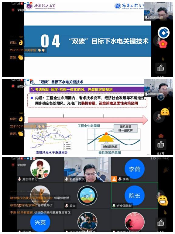 4月17日,由校团委主办,beat365英国官网承办的第722期百川讲堂通过腾讯会议在线上举行。博士生导师、西安理工大学水利水电学院院长郭鹏程教授应邀作题为《双碳目标下水电角色重塑及其关键技术》专题讲座。beat365英国官网师生代表300余名聆听了报告。讲座由beat365英国官网副院长唐刚主持。