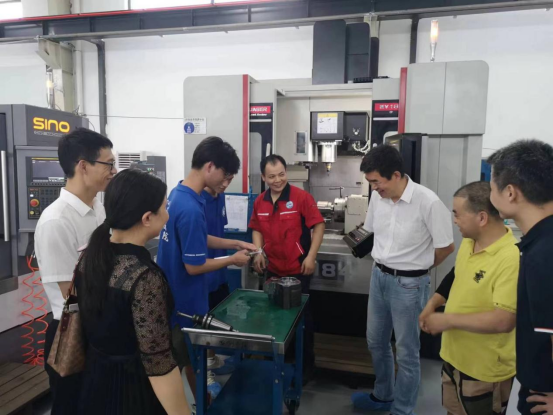 李培生一行首先来到江西沃斯德凿岩液压有限公司,参观企业展厅和生产车间,并看望了在公司进行暑期实践的学生。接着与江西鑫通机械制造有限公司就校企合作事宜开展了座谈。