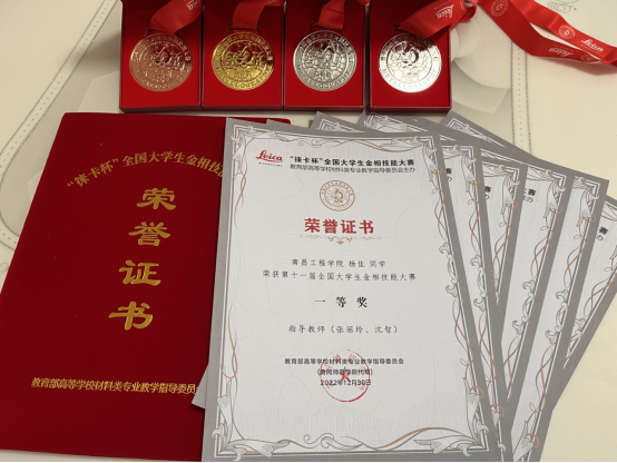 beat365英国官网在2022年3月初启动金相大赛集训与选拔工作,5月底组织了校第二届“恒宇杯”金相技能大赛,7月初组队参加第六届江西省金相技能大赛,确定4名选手前往分赛区江西科技师范大学参加国赛。参赛师生在疫情反复的不利影响下,坚持训练、严格要求、精益求精,最终不仅在国赛中出色发挥,表现出优秀的金相技能水平,也展现了团结协作的精神风貌,来自20级材料成型及控制工程专业的杨佳同学获得一等奖,黄超获得二等奖,张义星、郑永涛获得三等奖。