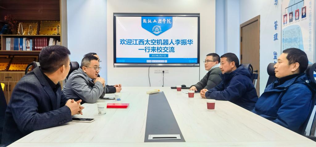 2月21日,江西太空机器人科技有限公司总经理李振华一行来学院交流,学院院长卢全国、省重点实验室专职副主任祝志芳、专业负责人及骨干教师一起参加了交流活动。