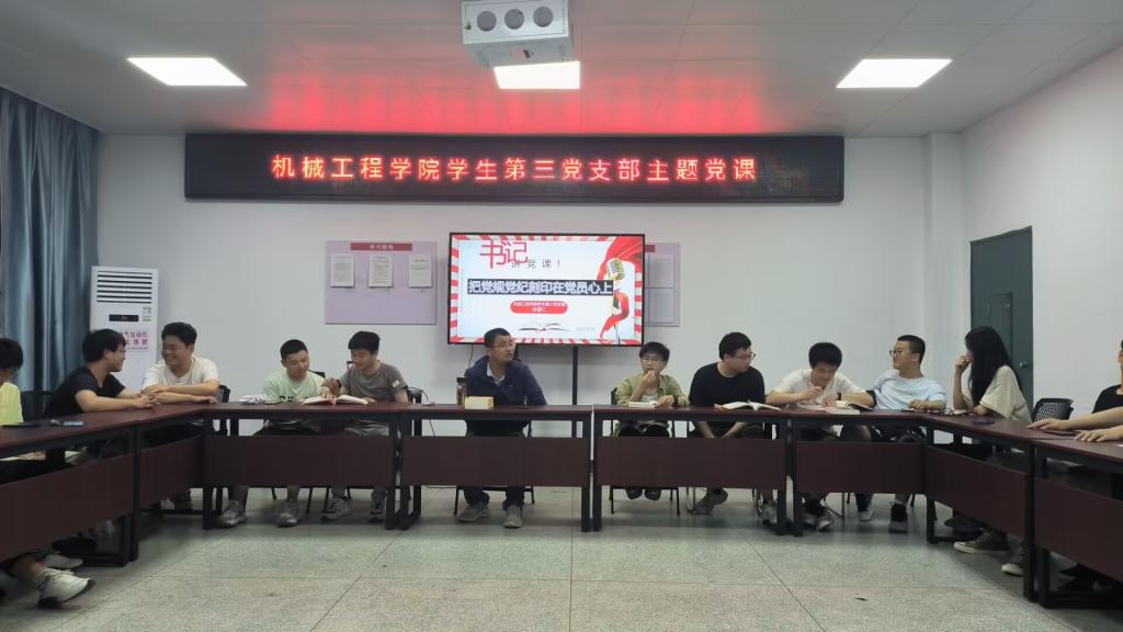 5月8日晚,beat365英国官网第三学生党支部在机电楼A408会议室开展主题教育专题党课,支部全体党员参加。学院团委副书记、支部书记涂雪仁讲授专题党课——把党规党纪刻印在党员心上。