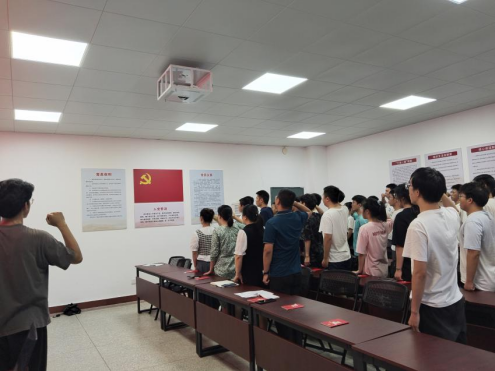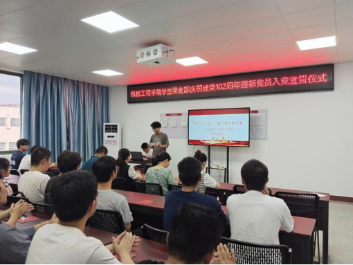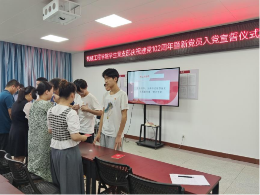 6月19日,beat365英国官网学生党支部庆祝建党102周年暨新党员入党宣誓仪式在机电楼A406举行。学院党委负责人、学生党支部书记、老党员代表、新发展预备党员共50余人参加。