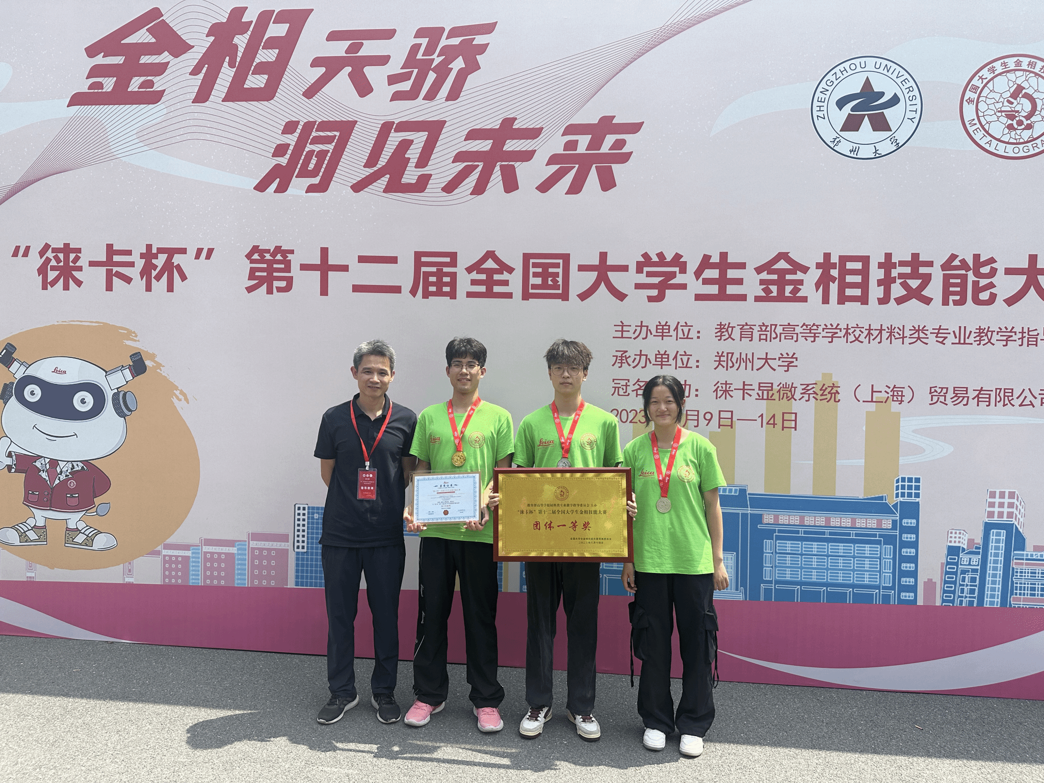 8月9日至14日, “徕卡杯”第十二届全国大学生金相技能大赛决赛在郑州大学成功举办。来自全国493所高校的1431名选手参加了本次决赛阶段的比赛。beat365英国官网金相团队荣获团体一等奖,郑奕杰同学获个人一等奖并以总分前四获得了“徕卡优胜奖”,梅越峰同学与龙凤华同学获个人二等奖。