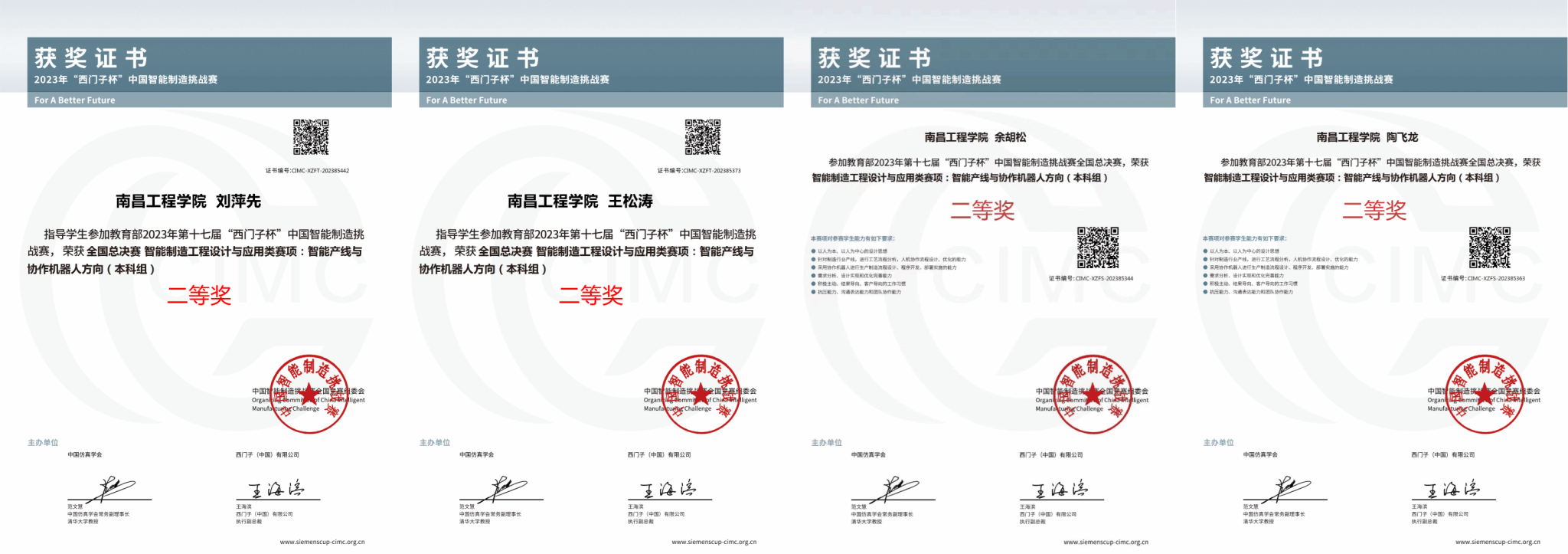 近日,教育部2023年第十七届 CIMC“西门子杯”中国智能制造挑战赛全国总决赛在兰州理工大学成功举办。beat365beat365英国官网教师刘萍先、王松涛共同指导,2021级机器人工程专业学生余胡松、陶飞龙组成的代表队参加了 “智能制造工程设计与应用类赛项:智能产线与协作机器人方向(本科组)”赛道的角逐,荣获全国总决赛二等奖。