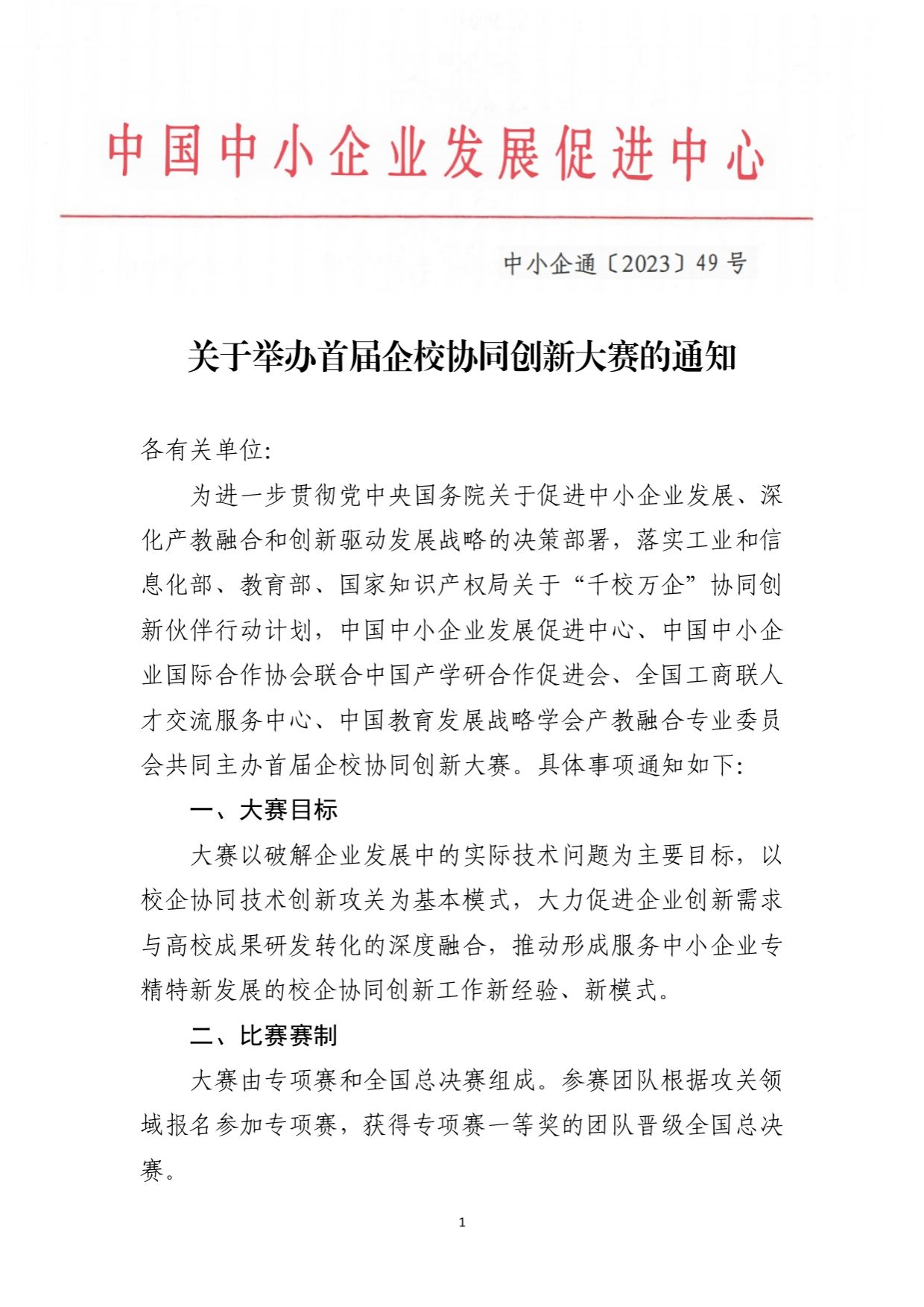 现将企校协同创新大赛组委会的《关于举办首届企校协同创新大赛的通知》转发给你们,请按照通知要求,积极做好组织参赛工作,具体参赛要求见通知。