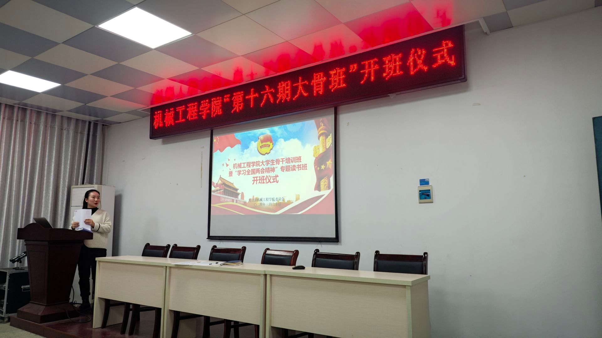 2024年3月20日晚上7点,beat365英国官网在三楼会议室开展了“大学生骨干培训班暨‘学习全国两会精神’专题读书班开班仪式”。在刘欣老师的指导下,开班仪式顺利进行。