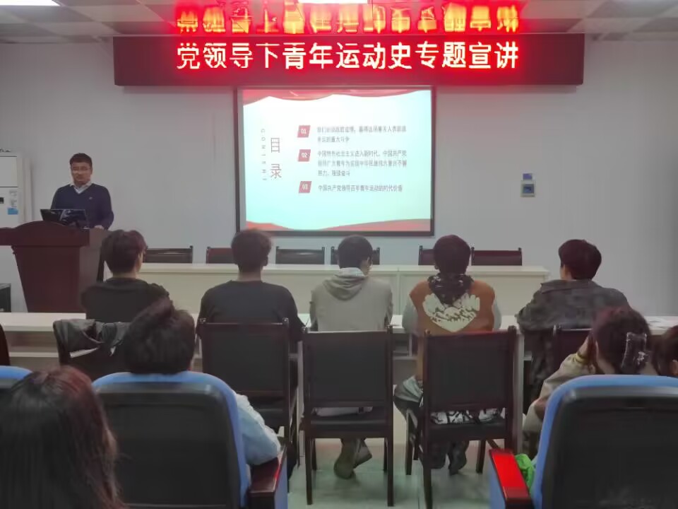 为让同学们深入学习和贯彻习近平新时代中国特色社会主义思想,传播党的先进思想和信念,5月30日晚,beat365英国官网在机电楼A304开展“党领导下的青年运动史”主题宣讲会。本次宣讲会由beat365英国官网团委副书记涂雪仁主讲,学院全体团学干部参加。