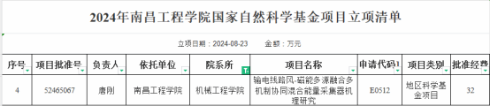 近日,国家自然科学基金委公布了2024年度国家自然科学基金项目评审结果,我院唐刚教授“输电线路风-磁能多源融合多机制协同混合能量采集器机理研究”项目获准立项,资助经费总计32万元(直接经费)。(图/文 茶映鹏)