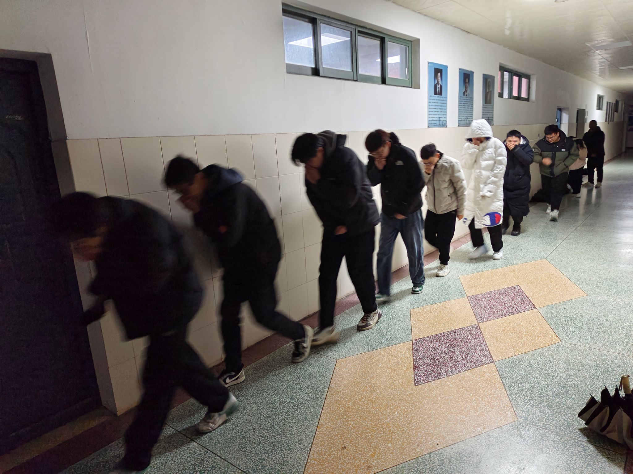 随着警报声的响起,演练正式开始。宿舍楼栋的全体学生纷纷猫着腰,用手或衣物等捂着嘴鼻,迅速从逃生通道有序地逃离火灾现场。工程训练中心则有专岗人员实施护导工作,保证学生全部撤离,在短短时间内,师生全部安全撤离至指定的安全区域。疏散演练过程既紧张又有条不紊,撤离到安全区域后,清点人数,确保没有疏漏一个学生,没有出现碰撞事件。