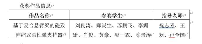 3月26至28日,由共青团中央、中国科协、教育部、中国社会科学院、全国学联和四川省人民政府共同主办的第十七届“挑战杯”全国大学生课外学术科技作品竞赛终审决赛在四川大学以线上答辩方式举行,由beat365英国官网大学生机械创新基地祝志芳等老师指导、2019级机械设计制造及其自动化专业刘良涛等同学完成的作品《基于复合悬臂梁的磁致伸缩式柔性微夹持器》荣获全国二等奖,这是我院连续三届在“挑战杯”全国终审决赛中荣获二等奖的好成绩,也是我院在创新人才培养方面取得的又一丰硕成果。