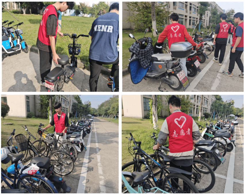 活动中,志愿者们把插空停放的车辆拉大间隙,将车辆扶正并摆放整齐,将堵塞道路的车辆挪到适宜的位置。志愿者们忙碌的身影穿梭在停车点,他们分工协作,认真配合,让停车区域逐渐变得整齐有序,机电楼周边整体面貌焕然一新。