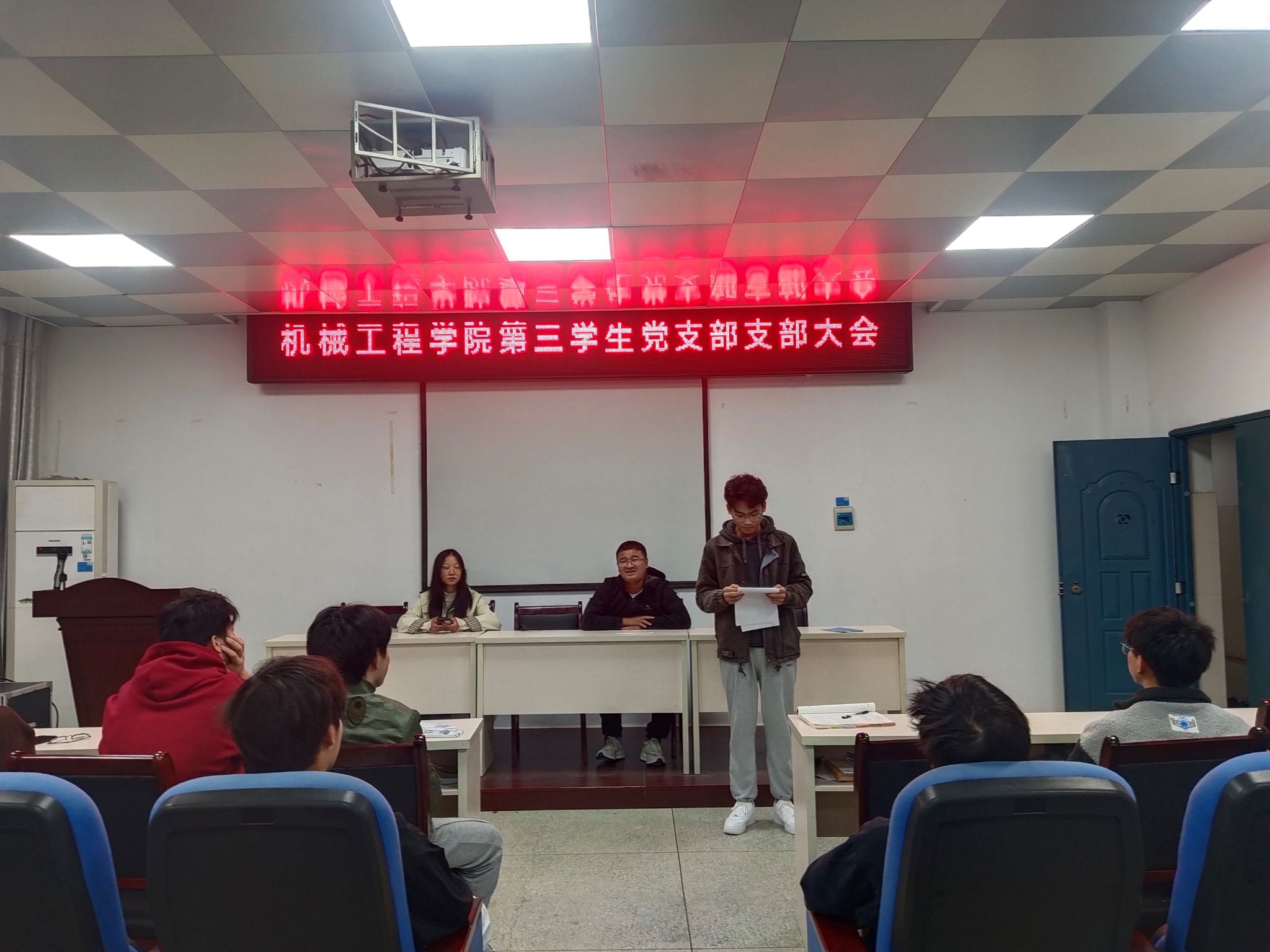 11月11日下午,beat365英国官网第三学生党支部在机电楼A304会议室召开支部党员大会,支部全体党员同志参加本次会议。