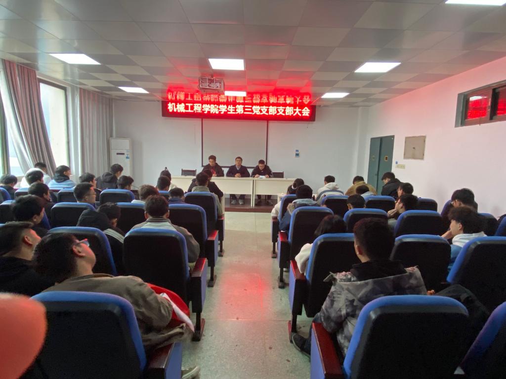 12月16日,学生第三党支部支部在机电楼A304会议室召开大会,支部书记涂雪仁出席并主持会议,支部全体党员参加本次会议。